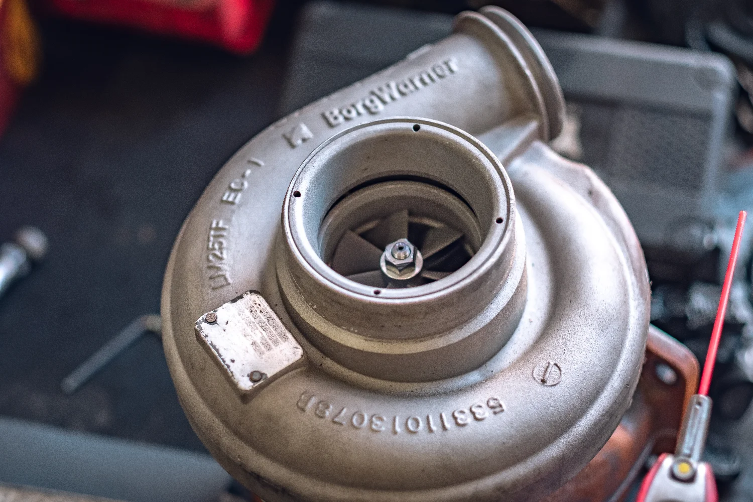 Blok silnika: Metalowa tabliczka znamionowa zazwyczaj przytwierdzona jest do bocznej ściany bloku silnika (często po lewej stronie, patrząc od strony koła zamachowego).