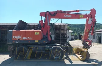 Koparka kołowa O&K MH5.5 to mobilna i wszechstronna maszyna budowlana o masie 15,5 t, idealna do prac ziemnych, drogowych i miejskich.